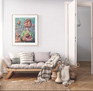 The colors and details in Rikke's paintings bring such warmth to my living room.